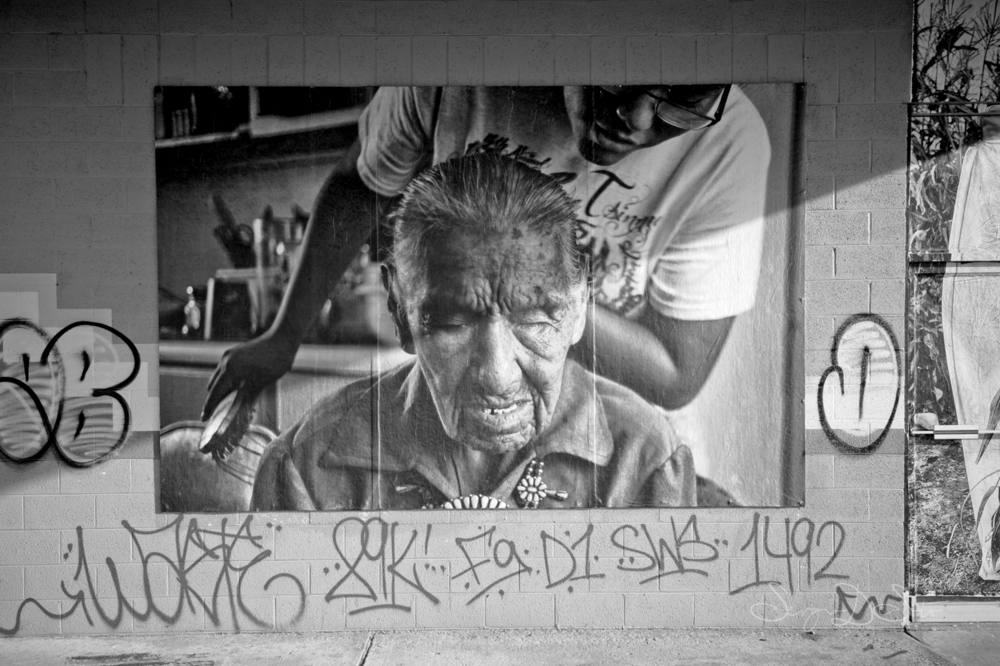 On the way to Tuba City, we spotted an abandoned hotel set back from the highway. The kind of place that had a story once — guests, a front desk, someone mopping the lobby at 6 a.m. Now it just sits there. Windows gone. Paint surrendered to the sun. We pulled over and spent a while with it. That's the thing about abandoned buildings — they don't rush you.