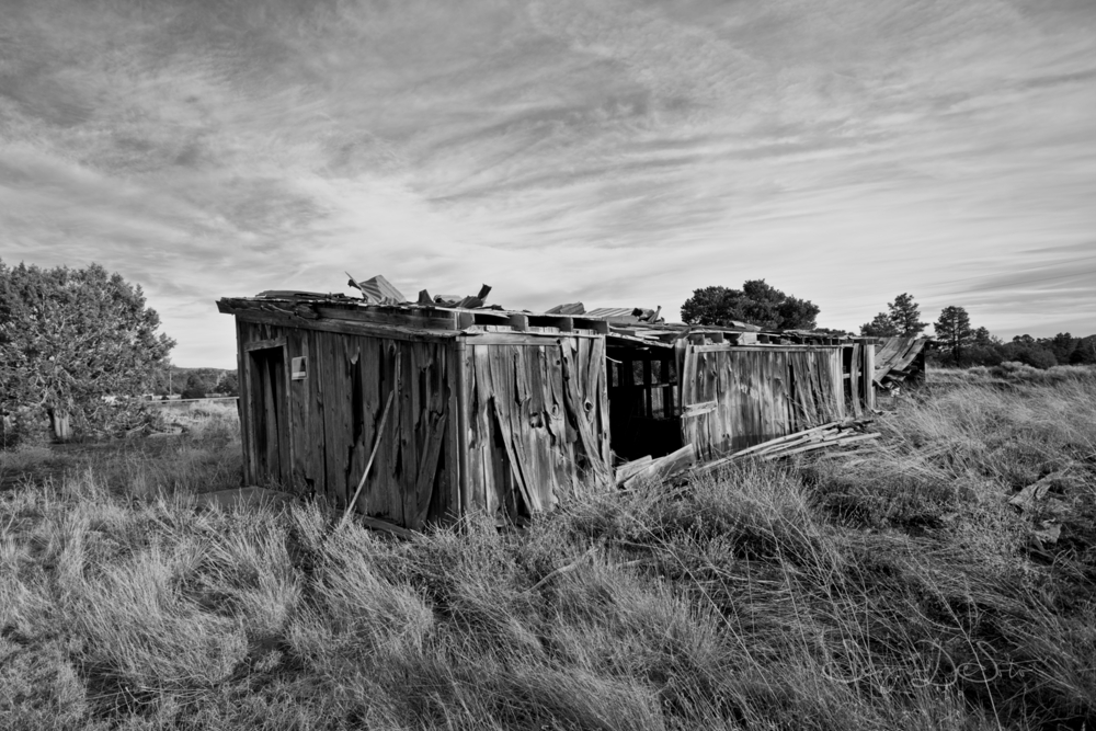 North of Flagstaff, we found an abandoned trading post right off 89. The signage was barely legible. The roof was caving in on one side. But the bones were still proud — you could see what it used to be. Someone built that with intention. Someone opened the doors every morning expecting customers. Now it's a monument to a economy that moved on without it.